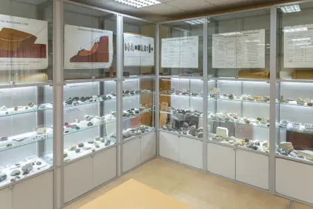 Na Faculdade de Engenharia Civil funciona um gabinete de geologia, onde são apresentadas amostras de minerais e materiais de construção, bem como um espaço para realizar trabalhos de laboratório com os alunos.