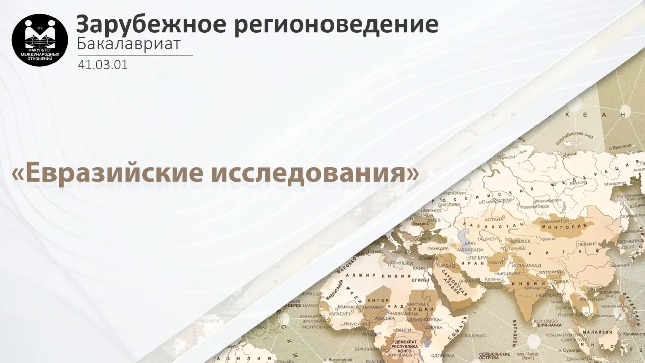 Барномаи «Минтақаҳои хориҷӣ» (ихтисос «Тадқиқотҳои Авруосиё») коршиносони таҳлилгариро оид ба рушди иҷтимоӣ-сиёсӣ, иқтисодӣ ва фарҳангии кишварҳои Авруосиё омода мекунад. Донишҷӯён иқтисоди ҷаҳонӣ ва минтақавӣ, муносибатҳои байналмилалӣ, ҳуқуқ, таҳлили сиёсӣ, маркетинг, таҳлили тиҷоратӣ, логистика, коммуникатсияи байнифарҳангӣ ва забонҳои хориҷиро меомӯзанд, воситаҳои рақамии коркарди маълумот ва асосҳои барномасозиро меомӯзанд. Омодасозӣ ба фаъолияти коршиносӣ ва таҳлилӣ дар мақомоти давлатӣ, ташкилотҳои байналмилалӣ, сохторҳои тиҷоратӣ, ВАО, марказҳои илмӣ ва таълимӣ равона шудааст.