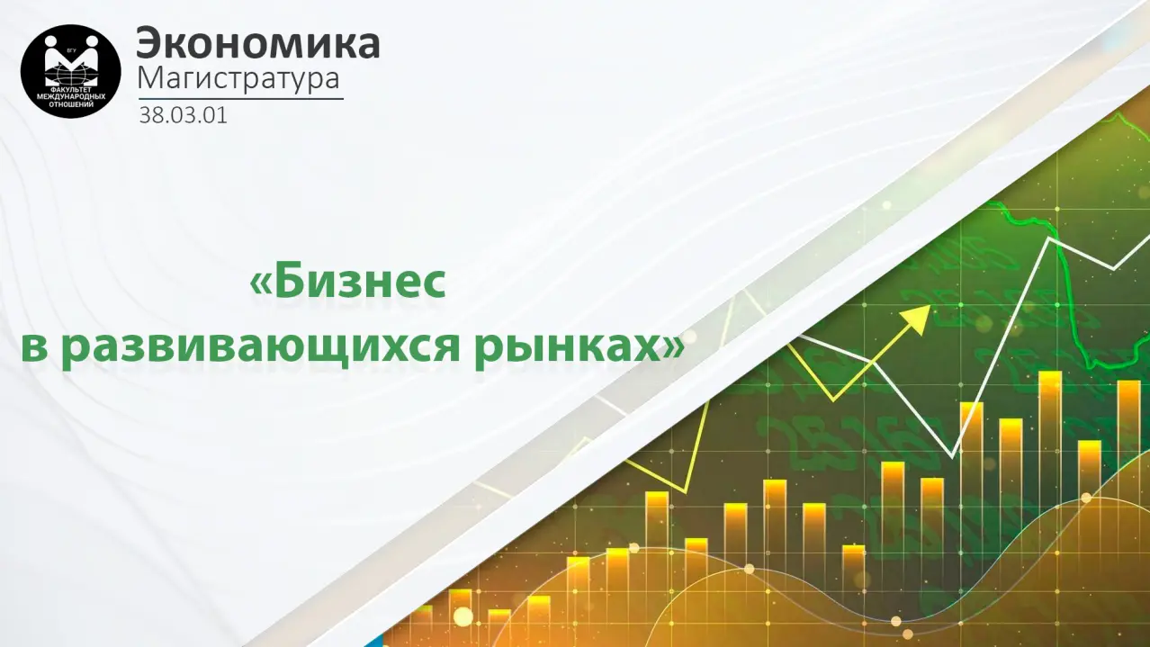 Барномаи магистрии «Бизнес дар бозорҳои рӯ ба тараққӣ» мутахассисонро дар соҳаи бизнеси байналмилалӣ ва иқтисодиёти кишварҳои рӯ ба тараққӣ омода мекунад. Донишҷӯён макро- ва микроиқтисодиёти бозорҳои рӯ ба тараққӣ, маркетинги байналмилалӣ, менеҷменти молиявӣ ва рақамӣ, стратегияҳои сармоягузорӣ, логистика ва идоракунии равандҳои бизнесро дар шароити иқтисодҳои динамикӣ ва ноустувор меомӯзанд. Барнома малакаҳои таҳлили тиҷоратӣ, банақшагирии стратегӣ, кор бо маълумоти калон ва ҳамкории байнифарҳангиро инкишоф медиҳад, хатмкунандагонро барои вазифаҳои роҳбарӣ ва коршиносӣ дар ширкатҳои байналмилалӣ, машваратӣ, фондҳои сармоягузорӣ ва сохторҳои давлатӣ омода мекунад.