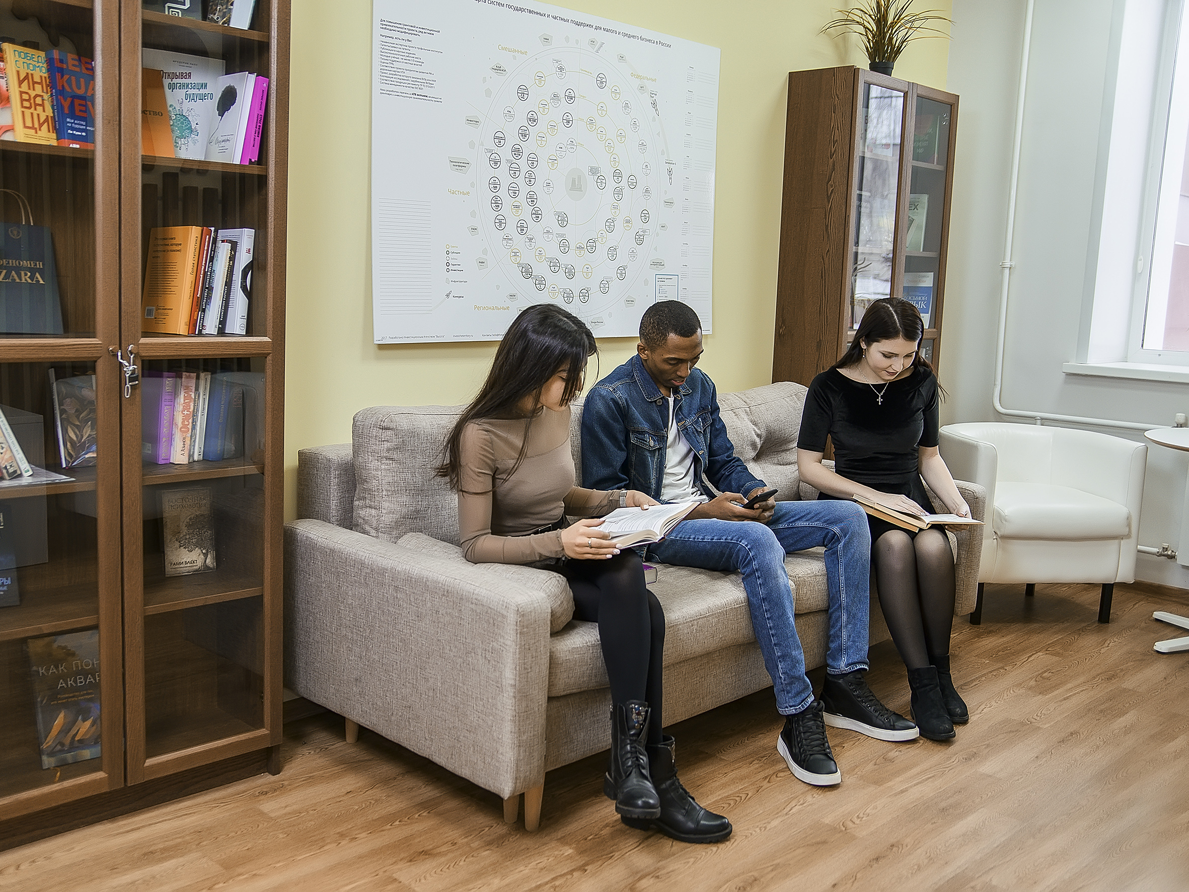 Созданы все условия для учебы, отдыха, общения и активного участия в социальной и культурной жизни. В современных студенческих пространствах (читальном зале, чиллаут-зонах, шахматной школе, пространстве коллективной работы «Точка Кипения») обучающиеся могут отдохнуть или подготовиться к занятиям.